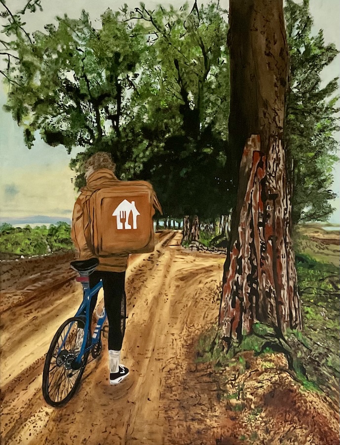 Das Bild stellt die Frage nach der Diskrepanz zwischen unseren Zielen und dem tatsächlichen Terrain unseres Lebens. Manchmal reicht der Wille nicht aus, wenn das Fundament fehlt. Der Fahrer muss absteigen oder umkehren. Er muss akzeptieren, dass der direkte Weg heute nicht das Ziel ist, sondern die Suche nach einer Alternative.